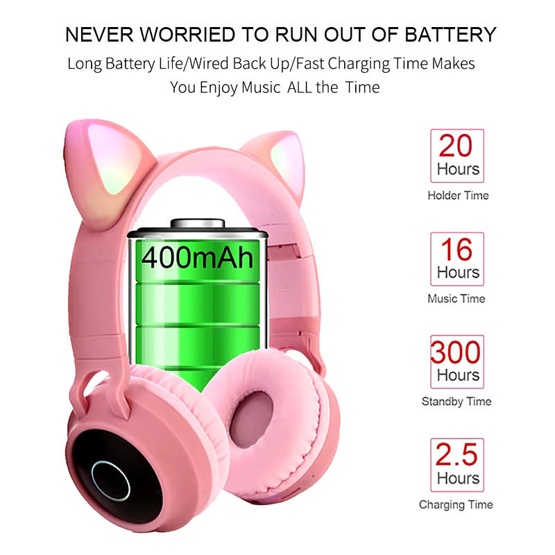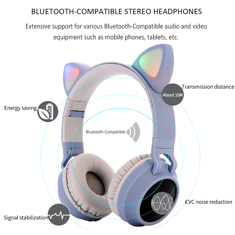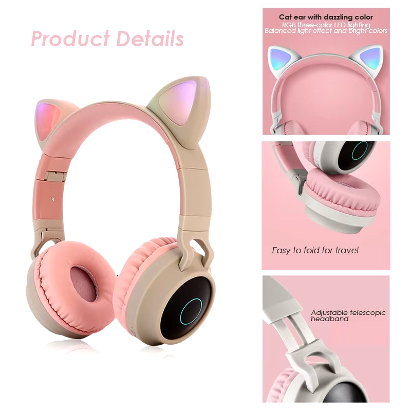 Cute Cat Ear LED Headphones: Wireless Bluetooth Headset for girls