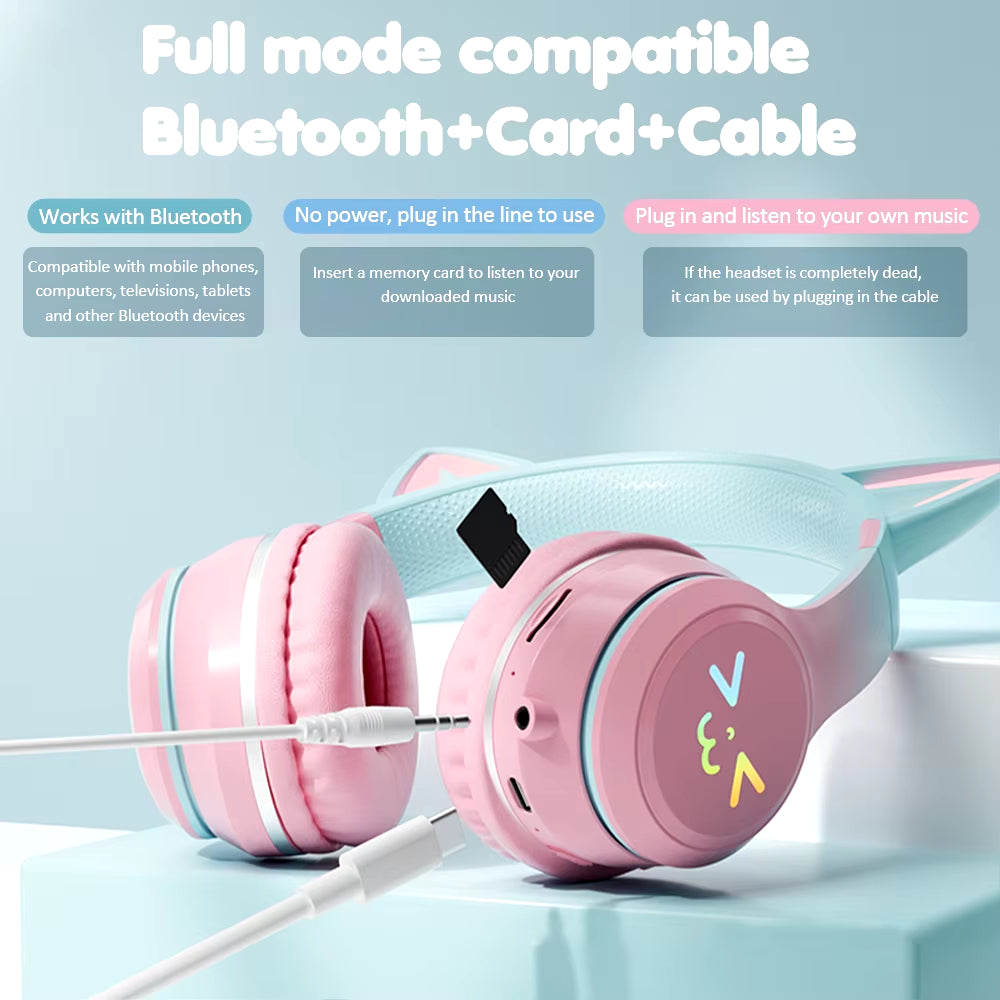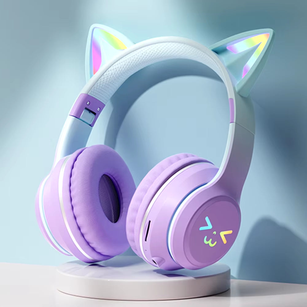 Cute Cat Ear LED Headphones: Wireless Bluetooth Headset for girls