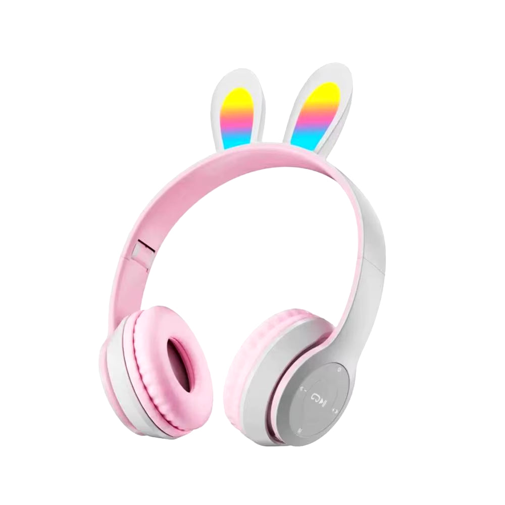 - These foldable wireless rabbit ear headphones are a practical and playful audio solution for young listeners. Available in a range of kid-friendly colors.